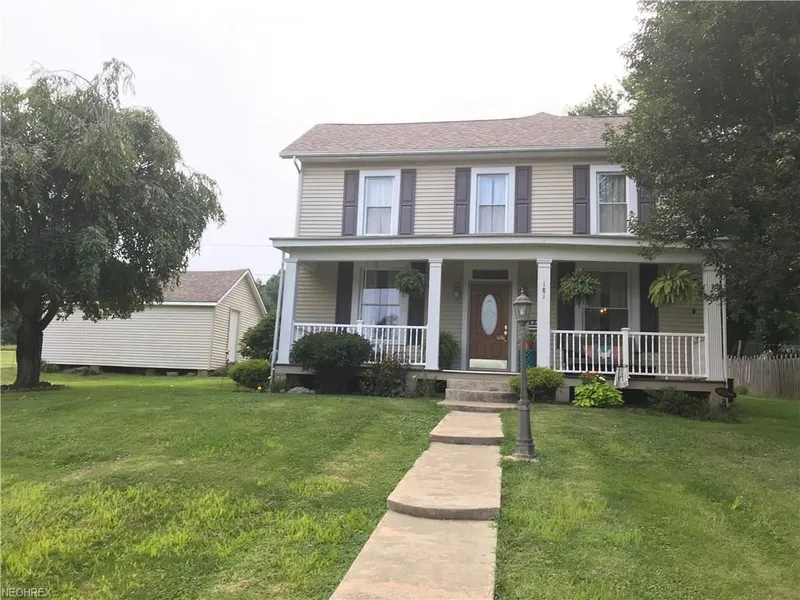 Gorgeous country setting for this well maintained older 2 story home w/many upgrades: roof, siding, windows, furnace, air, kitchen island, Corian countertops w/ molded bowl in kitchen & bath, 1st floor laundry off kitchen, beautiful wood floors, newer carpet, wood deck to 22x32 storage Bldg & NEWLY built 30x42 pole building/ garage, 12 ceilings, 8 doors w/high tech openers, well insulated walls,, separate electric & solid concrete floor w/floor drains plus 12x40 covered side porch added side po Bonus room upstairs could easily be 3rd bedroom (currently used as office space) Master bedroom has private entrance to full bath. Home has public water, Columbia Gas,AEP electric, & Spectrum cable/high speed internet. John Glenn School District. Gorgeous sunsets from backside of this gently rolling little piece of heaven!