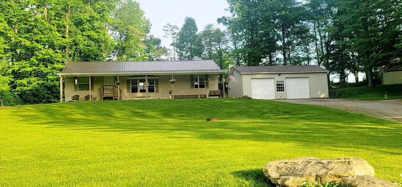 Situated on 1.4 acres move in ready ranch home 3 bed/2 bath -includes 5 buildings A detached 2 car garage - a huge 1200 sq ft pole barn - 2 storage sheds - another 700 sq ft barn - 220-amp cement insulated - mechanics dream or livestock project barn paradise - one story modular home has a propane whole house clean electric Generac backup- a decorative fireplace - large living room - patio doors off kitchen and abundance of cupboards and gas stove and appliances stay - plenty of closet space -full sized porch across front of home - perfect fit for most