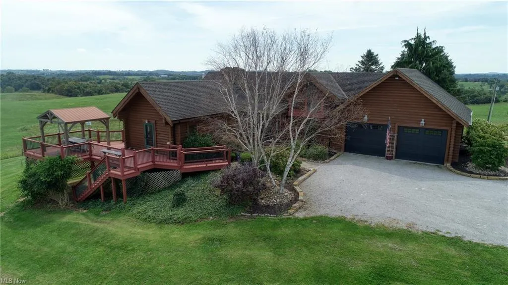 Updated to include 50 acres, but final acreage is negotiable and can be from 5 to 70 acres. Unbelievable views for this fabulous 4 bedroom log home with a great room with soaring ceilings. open loft and massive stone fireplace; plus a culinary fully applianced hickory kitchen. 2 car attached garage, and 2 laundry hookups. East Muskingum Schools. Public water. Large deck with view for miles. Furniture is also negotiable.