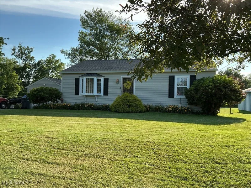Adorable 2bed/1bath ranch with a 1 car detached garage sitting on a beautiful landscaped (.45 acres) New gas Furnace,Central Air,Hot Water Tank, and Concrete Septic Tank in Sept. 2025. Newly remodeled Kitchen.( All appliances stay) Four ceiling fans. New roof, gutters, and trim in 2023. Corner private lot with mature trees. Full basement with laundry room and workshop (additional 936 sq. ft.) Could easily be finished and has walk-out to private backyard. Bay window in L. R. And all window treatments stay. MOVE IN READY!