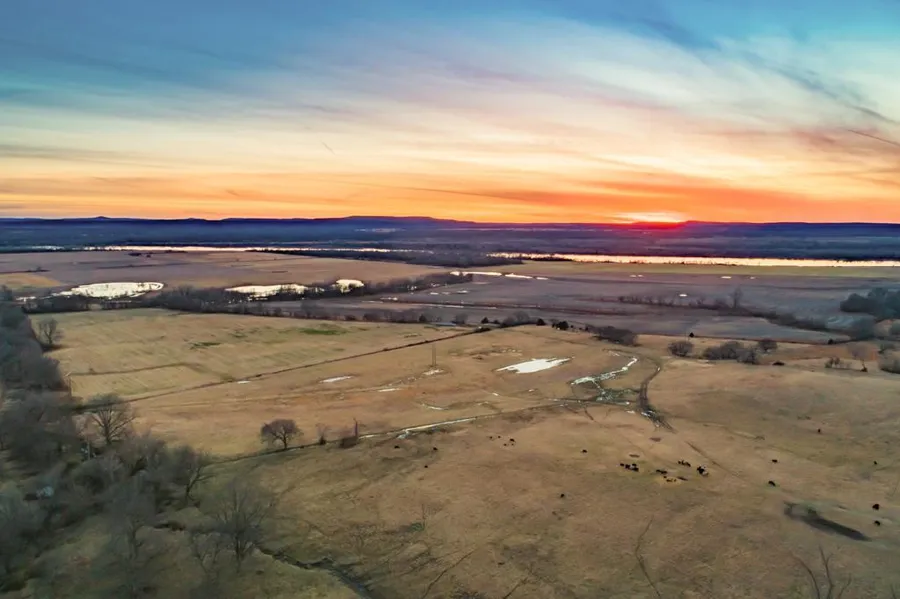 Enjoy endless Oklahoma sunsets from this location while overlooking 800+ acres of tillable bottom ground, waterfowl sloughs, and over 3 miles of Canadian River access. This property has all the right ingredients to turn it into a recreational mecca. It offers whitetail, waterfowl, dove, wild pigs, and endless fishing opportunities. The potential for increased productivity through irrigation via the water wells and river would also coexist effectively with strategically built waterfowl habitat and restoration management.