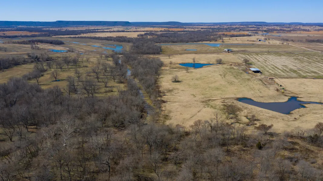 Turnkey Farm & Ranch Opportunity. Excellent perimeter barbed wire fence. 9 big & small traps cross fenced, some W Woven wire over barbed wire. Mobile home site with water, electric, and septic. 50x80 red steel hay barn with wall. Pipe cattle working pens. 3 stocked ponds. North pond has frost free waterer. South pond has controlled livestock access. South Dirty Creek bisects the property. Water and wildlife year round!