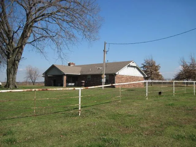 The 2350 sq. ft. brick house has 3 bedrooms, 2 baths and a large open family/living area. It is total electric with central heat and air. This spacious home has dual living areas with a see-thru fireplace for those cool winter evenings. There is a covered front entry/drive to provide all weather access for your guest. This home is well built and very well maintained. The improvements on this property are set back from the road and provide a very quiet family setting. The long graveled drive provides good access to both the house and the metal building. The property is fenced and has a steel pipe/sucker rod livestock corral. There is also an artesian water well located on this property.