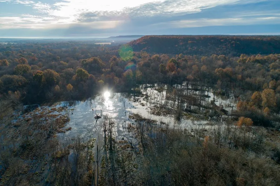 Without question the most appealing aspect of the ranch is the abundance of natural wetlands, plentiful creeks, copious amounts of hardwood timber (pecan/walnut/oak/hickory), and additional floodable timber that makes this a premier waterfowl hunting wonderland. As you make your way into the ranch your heart will race as you’ll begin hearing hundreds of mallards chattering away. It’s also very common to see multiple species of waterfowl. With approximately 300 acres of natural wetlands and duck slews, plus another 450 acres of bottom land primed to be utilized and flooded, the ranch is an ideal opportunity to own one of the best duck hunting properties in the state. With major creeks like Dirty Creek and Elk Creek, plus their tributaries splitting off and throughout the property there is more than an abundance of water available. Additionally, you can find several natural springs atop and throughout the bluffs that trickle their way down and across the property into the bottom land. It’s common for the ducks to roost to the west of the property in soybean fields or on the property in a large slew with an abundance of tall grass and cattails that provide cover. From their protective cover, you’ll most likely catch the ducks flying a short distance to the east into the large duck slews and flooded timber on the property.