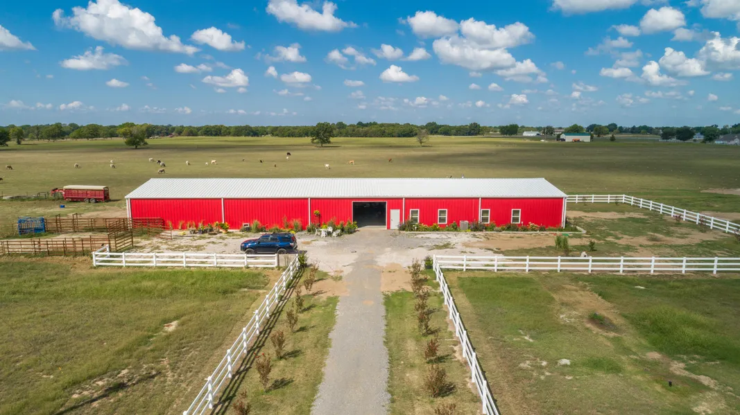 Connected to the home is a 156ft x 65ft covered shop. Included is a shelved work bench, built-in chicken coop, and a cattle feed trough so no matter the weather, you always have a dry place to feed. This vast shop area has multiple bay doors to store your farm equipment, vehicles, or hay.