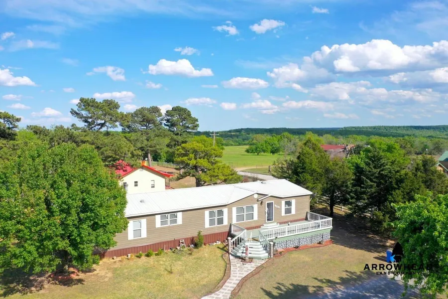 PRICE REDUCED! Situated in the heart of Muskogee County, this one of a kind farm has too much character to be contained. As you drive up the newly poured concrete driveway, through the white fenced entry with stone pillars, you'll be blown away by the beauty of this property.You'll be greeted on this farm by the impressive 2016 model energy efficient home boasting over 2300 sqft of living space. This home features 4 bedrooms, 2 bathrooms, computer room, den, dining room, and a large kitchen. You'll have plenty of room to spread out and enjoy the comfort of your own space.If that's not enough living space for you, there's also a beautifully updated 2017 model, 3 bedroom, 2 bathroom home on the property. With a living room, den, dining room, laundry room, and massive kitchen, this home has everything you need for comfortable living. Recent updates include new carpet and fresh paint, making it move-in ready.Step outside and you'll find a beautifully manicured front yard complete with fruit trees, a standalone two-car garage with an electric door, and a larger fully functional shop perfect for storing all your farm equipment. The property also features a working coral, full perimeter fence including cross fencing, multiple ponds, a creek, and cleared pasture for your cattle or horses. The meandering timber provides the perfect cover and bedding for whitetail and small game, making this farm versatile enough for hunting, recreation, or evening walks with the family. With easy access to Highway 69, commuting is a breeze. You'll love living in the peaceful countryside while still being close to all the amenities you need. Don't miss out on the opportunity to own this one-of-a-kind property. Contact Josh Claybrook at 918-607-1006 to schedule a visit and see for yourself all that this gorgeous farm has to offer.