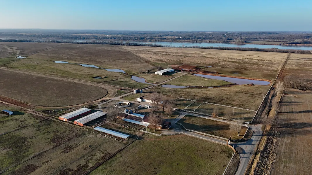 Home of Champions - River View Farms has been home to many champion Thoroughbreds and Quarter horses. This wonderful equestrian training farm has held up to 200 Thoroughbreds being bred and trained for horse racing. The home is uniquely built on the 2nd story above a four glass-enclosed stalls with an entertainment area to showcase the horses for sale. Your clients can relax in comfort while horses are ran through the outer stalls, each with access for closer inspection. There is even an area to view the horses from above. The home features 4 bedrooms and 2 3/4 baths, kitchen and multiple living areas, with wonderful views of the ranch. Attached to the lower area of the home are 4 -12"x16" and 15 - 10"12" brick-enclosed stalls with tack room. Also, an adjacent 36"40" feed and AI room. Outside there is are two more horse barns, one with 13 - 12"x16" stalls and one with 17 - 12"x12" stalls, all with runs. There is an 175"x60" equipment barn, of which 75"x60" is enclosed. There is 3700" dirt track for training as well as a round pen. There are miles of pipe fencing with multiple paddocks, all with a source of water. There is also a 3bed/3bath bunk house with 2 a two-car garage. The pastures are primarily class 2 and 3 soils, which produce great hay or could be farmed. With over 1.5 miles of frontage along the Arkansas River there are plenty of areas perfect for waterfowl and deer hunting. Give me a call and let me show you around this premium farm.