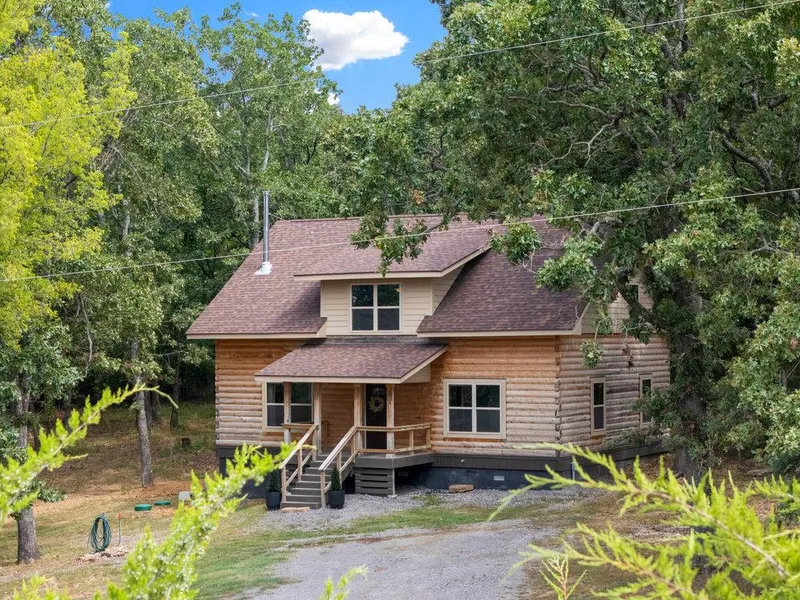 Escape city life to this Modern Log Cabin on 10 acres, both a homesteaders dream and sportsmans paradise surrounded by public hunting land, off-roading & hiking trails, Greenleaf State Park & Lake, Tenkiller, & Ft Gibson Lake. Thoughtfully designed for sustainable off-grid living, the cabin features Pre-Cut Logs & Spray Foam Insulation to ensure energy efficiency as well as a Wood-Burning Stove with Cooktop feature. Unwind after a day of adventure around the Fire Pit or in the Primary En Suite Soaking Tub on the main level. The interior offers an open floor plan with Tall, Vaulted Ceilings as well as walk-in Pantry, Indoor Laundry, Office/4th Bedroom, Storage, and a Flex Room upstairs. All-weather Outdoor Decking in the front & back covered entries. Additional +/-2,400sf Block Building w/utilities stands ready for your customization. The diverse landscape includes a mix of Open Pasture and Lush Woods, a Wet Weather Creek, and countless Pecan Trees & Berries. Three Utility Poles enable easy addition of Pad Sites making it ideal for multi-generational living. With ample space to tailor the property to your vision, build a legacy to create a tradition of shared experiences, cherished moments, & lasting memories! Less than an hour from Tulsa and 20 minutes from medical, dining, & shopping in Muskogee.