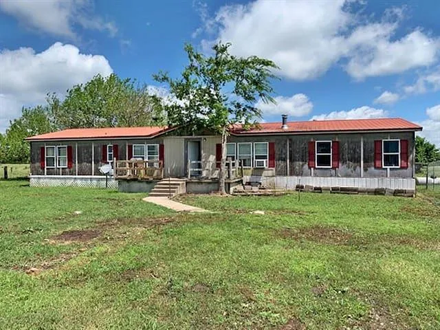 Mini farm just outside of Porum. This large 4 bed/2 bath doublewide on 7.7 acres with shop building and extra outbuildings is fenced and ready for your livestock. Less than a mile to Porum Schools. Home is ready for your finishing touches. Shop building has 2 overhead garage doors with work area on the end. Large shed could be used for storage or workshop. Good fencing with small livestock barn.