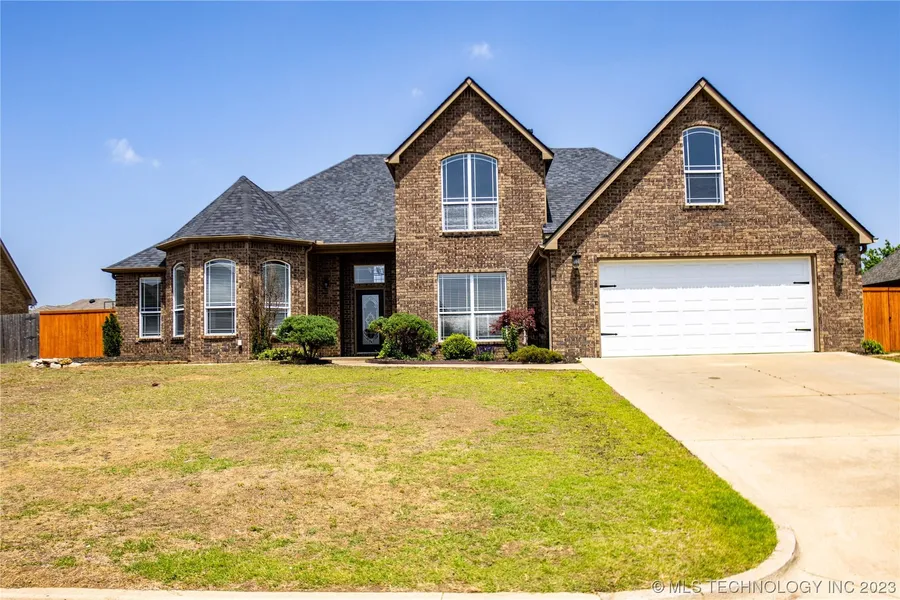 New Price Reduction!!! Just updated with new paint and new carpet throughout!! Beautiful 5 bedroom 2 1/2 bath home in great neighborhood in Fort Gibson. Walk into the elevated trey ceiling and gas log fireplace in living room where its open into the dining area. Nice kitchen with an island and large pantry. Master bed and bath are to the left as you enter the home. Upstairs you will find the other 4 bedrooms and bathroom. Office area off the living room. Natural light throughout the home along with a security system. Handy laundry chute from upstairs into the laundry room. New roof and gutters May 2023. Big backyard for family gatherings. Come take a look and make this gorgeous home your very own.