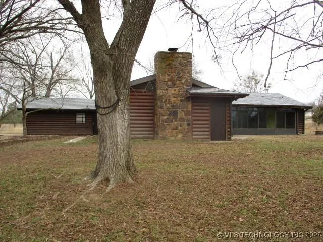 Log siding house on 5 acres east of Fort Gibson. Home features 2 living areas with a fireplace in the den and a combined living area with the formal dining. Granite countertops in the kitchen with a sunroom off the master bedroom and a metal shingle roof. Safe room in the 2 car attached garage. Also has a 45 x 40 barn and 2 storage buildings. FHA $100 Down Sales Incentive for Owner Occupant