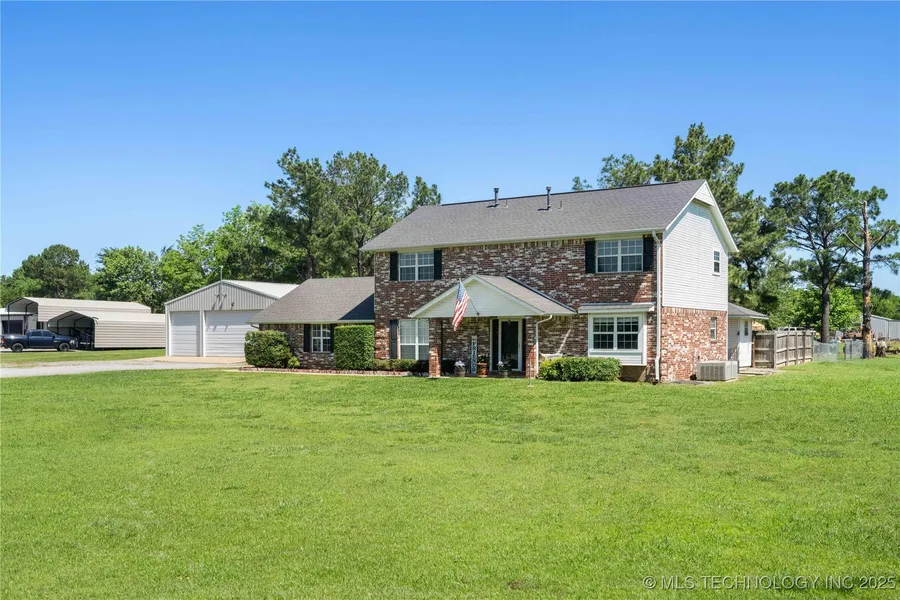 Discover the perfect blend of peaceful country living and convenient city access with this beautiful 2.5-story, 4-bedroom, 3.5-bath home situated on 2.5 acres. From the moment you arrive, youll be captivated by the inviting character of this unique property. Step inside to a spacious open-concept kitchen featuring granite countertops, dual pantries, and a seamless flow into the dining and living areasideal for entertaining or cozy family nights. The elegant spiral staircase adds a touch of charm and architectural interest as you enter the home.The main-level primary suite offers comfort and privacy, complete with a window seat, walk-in closet, and an en-suite bath featuring a granite-topped vanity and a tub/shower combo. A convenient half bath on the main floor is perfect for guests. Upstairs, youll find two generously sized bedrooms. One could serve as a second primary suite, with its own private bath, dual sinks, and two closets with one being a walk-in. The third bedroom shares a Jack-and-Jill bath with a home office which could also function as a fourth bedroom, enhanced by built-in shelves and access to a private upstairs deck.Step outside to your personal backyard retreat. A spacious deck leads down to a stunning 20x40 in-ground pool, complete with a tiki barperfect for summer gatherings with family and friends.Additional features include:A 30x32 detached garage/shop, ideal for boat or vehicle storage, or extra space for your hobbies and gearA covered front porch, perfect for enjoying morning coffee or evening sunsetsA separate single-car garage with drive-through doors, located on the east side of the propertyA serene, well-sized pond offering a peaceful natural settingDont miss this rare opportunity to enjoy country living with all the modern amenities and space you needjust a short drive from town!