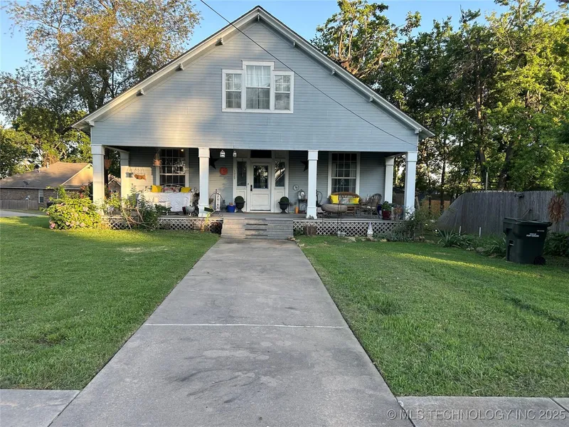 Welcome to this charming two-story home featuring a wide, welcoming front porch that spans the length of the houseperfect for friendly chats with neighbors while children enjoy the spacious front yard. Step through the front door and onto original hardwood floors that lead you down a long hallway adorned with wood pocket doors and a decorative fireplace. The main floor offers a blend of comfort and character with a warm and inviting den complete with a second fireplace, and a generous formal dining room ideal for hosting memorable gatherings. Just off the beautifully updated kitchen is a versatile craft room with abundant storageperfect for hobbies or organization. Tall ceilings, intricate moldings, and large windows bathe the interior in natural sunlight, creating an airy, timeless feel throughout. The primary suite is located downstairs and features a spacious walk-in closet, granite d...