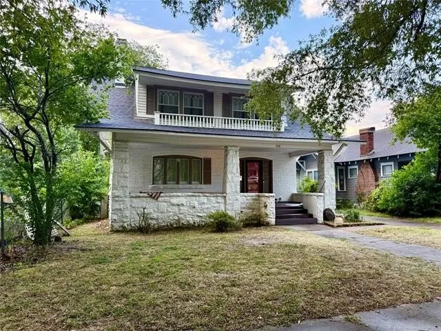 This charming four-bedroom home is in the original townsite in the heart of Muskogee, Certified Historic District. 2 full bathrooms, kitchen with granite countertops, detached garage. One bedroom downstairs, 3 upstairs. Upstairs bedroom has gorgeous sunroom porch. Basement with utility room. Covered porch, perfect for entertaining.