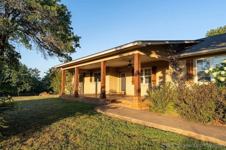 Unlock the door to this Oktaha custom ranch-style home nestled on a 10 acre rolling patch of peace and tranquility. Beyond the fenced and mature-tree lined acreage lies a professionally landscaped jewel that welcomes visitors with custom cedar beams on a beautifully stained porch. The front door features inlaid iron accents on your way to custom glazed cabinetry cloaked in granite countertops and a grandiose cooktop fit to feed royalty, all while peering out 2 expansive windows to admire passing wildlife outside. The home features 3 bedrooms, 2 bathrooms, a large laundry/office area as well as a sunlit dining area flanked by a fresh deck ready for entertaining or relaxing. Venturing further on, Rural water along with a well house that is perfect for quenching both livestock and landscape! Rounding out the last leg of the tour is a detached 2 car garage and an expansive shop fit to house all your mechanical equipment, machinery, or any other purpose the mind can conjure. Truly a must see property!