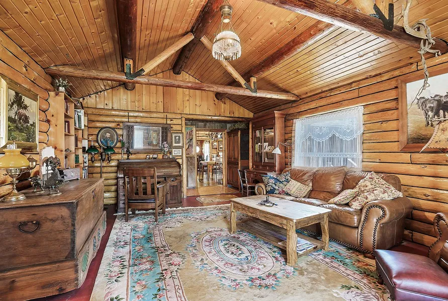Main Lodge: This log home has Approx. 3,500 sq. ft. with a master suite and four additional guest rooms. The main lodge consists of a large kitchen, formal dining area and living room. Wraparound deck with views of the Bull Mountains.