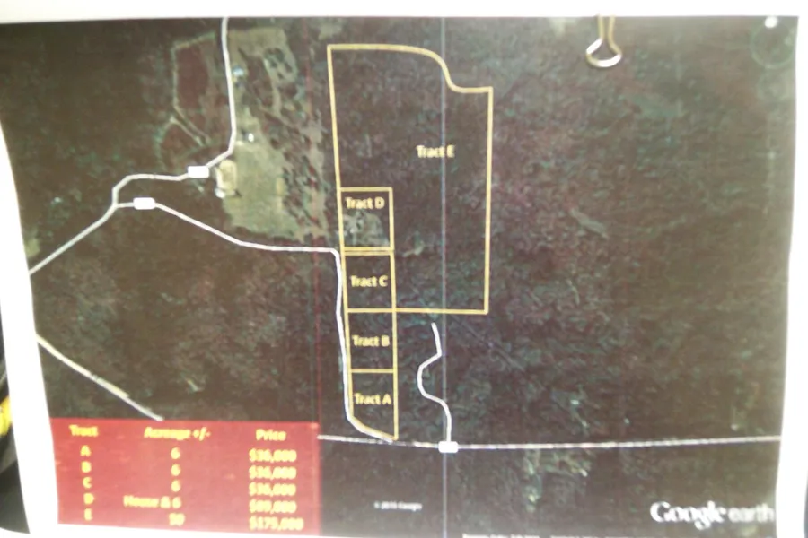 50 acres, mostly pine trees. There is an additional 20 acres that is adjacent and can be purchased.