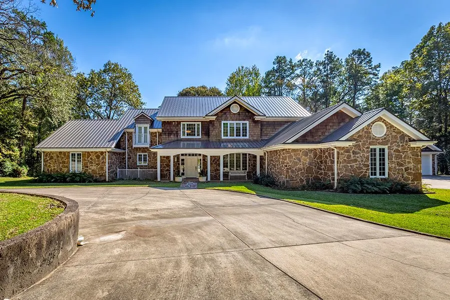 Secluded custom French Style Estate on 18 + Acres in Historic Nacogdoches! This exquisite property features a Gourmet Kitchen, high quality appliances, 2 walk-in butler/storage closets, walk-in pantry, mud room w/ storage, heated slate & marble flooring, steam shower, soaring 10 - 20ft ceilings, new standing seam metal roof, 2 car attached & 2 car detached garages. It has 4 bedrooms, 4.5 baths, formal dining & living areas w/ built-in shelving, exercise room & large game room upstairs. Plus a 2800 sqft metal workshop with 3 bay doors, reception area, 2 offices, kitchen, bathroom, & generator!