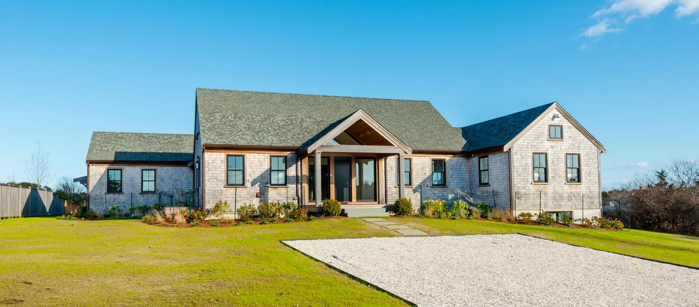 Brand New Construction Near Town with 5 Bedrooms set on an acre of land featuring large spacious rooms with modern clean lines and beautiful sun-lit spaces. Stunning single story design with vaulted ceilings and full lower level Designed by Ben Normand and expertly built by Christopher Gallant, an 8,000 sf+ residence with approximately 6,000 sf of finished living space awaits your finishing touches! Nearing completion with landscaping underway, the sale includes HDC approved plans and permits for a 18 x 38' Pool, Cabana and a Two-Bay Garage & Barn.