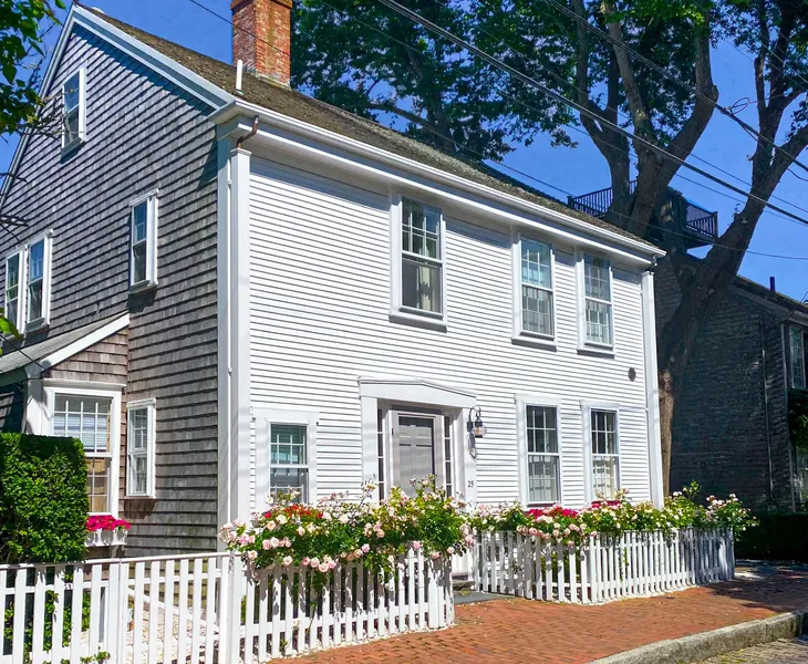 This antique Nantucket home has been thoughtfully and masterfully restored and represents an opportunity to live in the heart of the Old Historic District. The location, which bridges Town, the Cliff, and Brant Point, offers every convenience and is among the most desirable and coveted on the island. Built in 1770, this four bedroom, three and one-half home has been owned by one family for more than 50 years. Impeccably maintained, it is in pristine condition. Original details, such as the antique wide pine floors, beamed ceilings, traditional millwork, iron hardware, and four fireplaces have been preserved and suggest a respect for the historic integrity of the Early American, Quaker-style aesthetic. From the cobbled street, this home appears to be a step back into Nantucket’s rich and storied history: the pitched roof, the sidelights on either side of the front door, the picket fence that separates the clapboard facade from the brick way. Yet once inside, it is clear that great care has been taken to update it with the highest quality amenities and appointments for today’s modern lifestyle. 25 North Water Street awaits a new family to call it their Nantucket home today and for future generations.