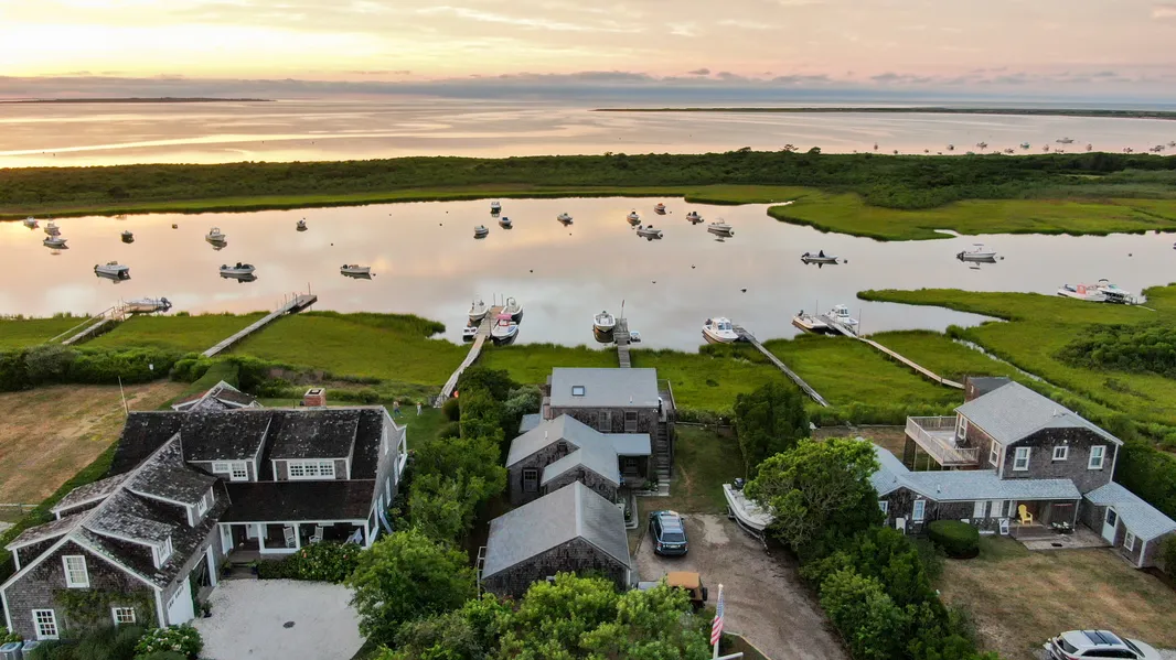 "HITHERVIEW" ... perfectly sited directly on Hither Creek, this waterfront four bedroom property overlooks Madaket Harbor, and the Atlantic Ocean along with a highly coveted licensed private dock to enjoy life on the water. Stunning vistas of Tuckernuck Island, Little Neck, and Jackson Point, this waterfront Madaket property embodies the simplicity of life on the west end of Nantucket. Two car garage is ample storage for cars, all-water and beach gear, and fishing poles. A boater's dream comes true with a private 28' dock with a walkway to use at your leisure. Cast a line off the dock, jump on the boat, and capture the sunsets from every vantage point from this rare offering. Relish every moment from "Hitherview".