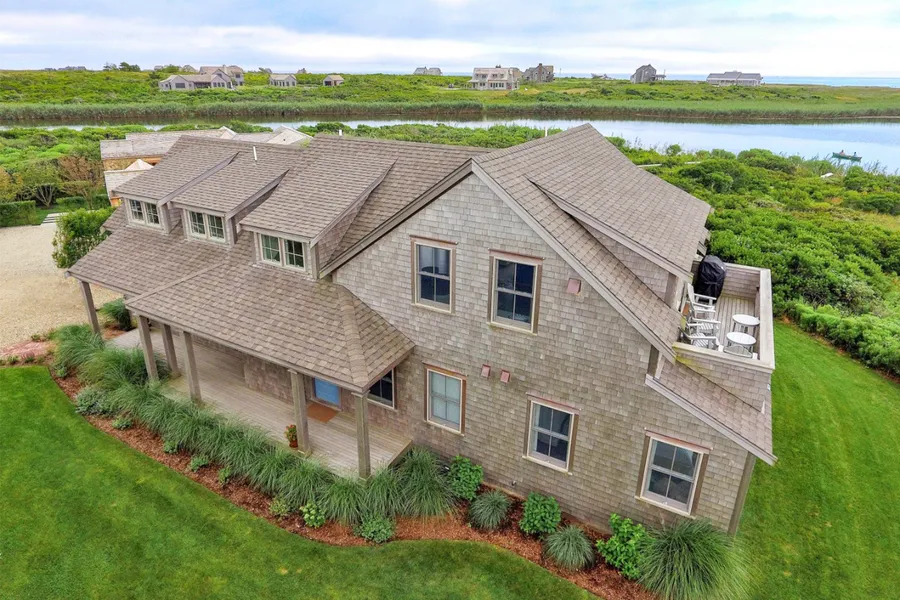 This home features four gorgeous bedrooms, four and one half baths and stunning unobstructed views of the Atlantic Ocean. Every detail was well thought out and carefully integrated into the design. There are three en suite bedrooms and a fourth bedroom with a hall bath. The second floor is an expansive room that combines a kitchen, half bath, a living room and a dining room with access to two decks with views with big ocean views. This floor also encompasses the primary suite with water views, and individual his and hers closet, and a shower bath with glass doors. The kitchen's streamline design incorporates an under the counter refrigerator, freezer drawers, beverage refrigerator, built in microwave, Wolf stove and Wolf cook top. The first floor features a galley kitchen for guests, a second living space, a dining area and easy access to a screened in porch that leads to a large deck with outdoor shower and a beautifully manicured lawn.