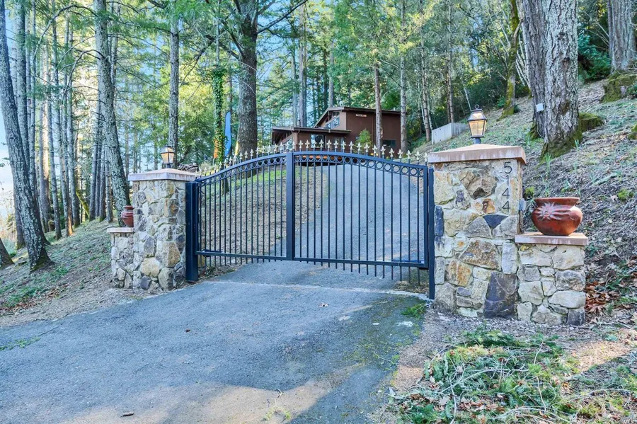 Enjoy this secluded year round contemporary residence nestled in a grove of tall redwoods that provide a welcome retreat from hectic city life. the living room is spacious with open beam ceilings and a wood burning fireplace. the living and dining rooms embrace the outdoors through sliding glass doors leading to an expansive wrap around deck and hot tub. the master bedroom upstairs has it's own kitchenette and separated entrance could function as two units. on Sonoma side so vacation rental is possible but clients should verify with county. 7 min to Calistoga down town and 25 min to Santa Rosa