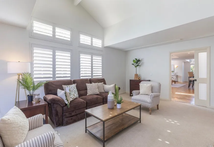 Handsome single level residence in the relaxed village of Calistoga offering a spacious open concept Chef's kitchen appointed with stainless steel appliances including an impressive 6-burner gas cooktop plus griddle, a bright living room with fireplace, privately situated primary bedroom featuring en suite bathroom with walk-in shower, dual vanity, new tile floor, walk-in closet and access onto backyard deck, as well as an abundance of storage, wired whole-house stereo system and security system throughout. Outdoor areas include a BBQ deck, backyard entertaining deck, sun washed garden spaces on automated irrigation system and dog secure fencing. Also featuring an attached two car garage with washer/dryer and additional storage. Stroll into town, enjoy Calistoga's world class restaurants and spas, explore the hiking and biking trails of the Palisades range and perhaps acquire a private m...