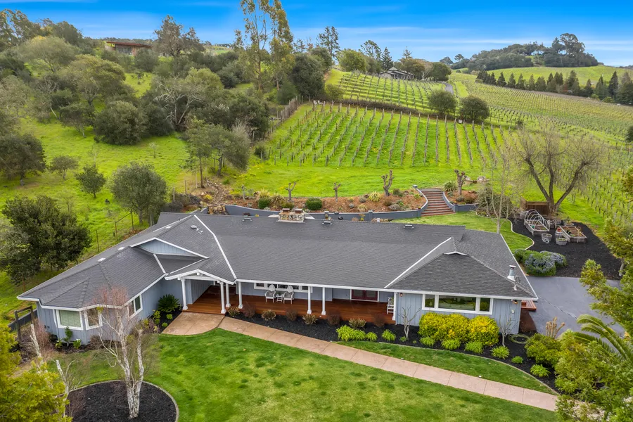 Beautiful gated vineyard estate with just under an acre of Syrah vineyard. This large inviting remodeled home includes a chef's kitchen that features a Wolf range, wine cooler, farm sink and plenty of custom cabinetry that flows to the Family/Breakfast area and fireplace, for a cozy gathering space. The bonus room is currently used as a game room. The built-in study space wall in the Great Room, can be used by all. Enjoy a perfectly appointed luxurious primary bedroom Suite with an attached sitting room, complete with a TV, or just read your favorite book. Take in all that this home has to offer. Step out into the backyard to entertain and enjoy the stone waterfall, garden or just sit in the spa, and yes, enjoy those vineyard views! Walk up to the top of the property to enjoy the views of your own vineyards as well as the surrounding vineyards. The 3 car garage includes an office space or home gym, complete with it's own front door entrance and parking area.