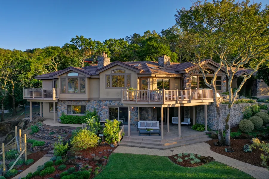 Stunning view property in a private gated setting located on the highly sought after east side of Napa minutes to downtown. Mostly single level custom home offers a desirable floorplan with primary living areas including family room with double sided fireplace opening to gourmet kitchen with center island and chef's grade appliances, office and luxurious primary suite with view deck, hot tub, fireplace and spa-like bath all on the main level. Lower level with separate entrance ideal for guests or extended family offers 2 additional bedrooms, bonus room currently used as an exercise studio and second family. Perfect synergy of indoor and outdoor living with sliders opening to multiple outdoor entertaining areas and stunning grounds featuring natural rock outcroppings, vegetable and flower gardens with expansive views of the valley floor and Mount Saint Helena. Temperature controlled wine ...