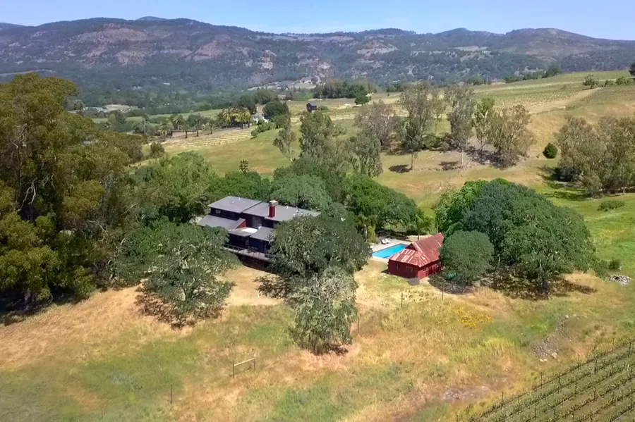 Stunning vineyard and mountain view estate located in the highly desirable Coombsville AVA minutes to downtown Napa offers farmhouse style 5 bedroom 4 bath main house, an artist studio currently used as a guest house, pool with spa and barn with electricty and water perfect for entertaining and/or pool house. Main house offers 1st floor master with fireplace, 4 additional bedrooms including an en-suite with its own living room and full bath with separate entrance located at the opposite side of the house from the master. Remodeled kitchen with center island and informal dining. Great Room style family room with fireplace opens to formal dining and large wrap around deck with expansive seating area and extraordinary views of neighboring vineyards and the oak studded grounds. This special property provides all of the elements needed to create your dream wine country estate!