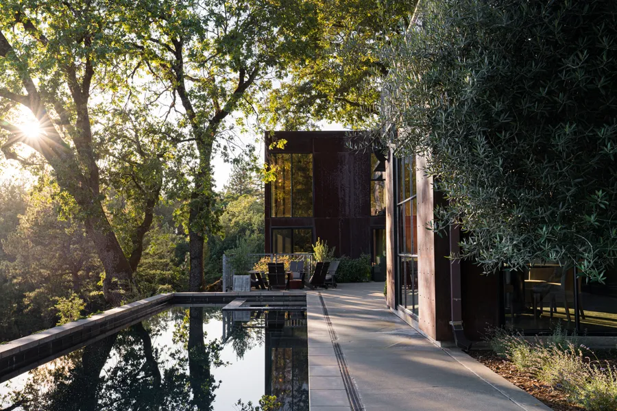 Set at 2,200 feet above sea level, this modern gem reigns over Knights Valley. Every amenity is here: Spacious main home with 3,100 sq.ft., 2 primary suites, a large chefs kitchen, plus views from every room. Adjacent is an 800 sq.ft. guest house with a spectacular sleeping loft. Connecting the two structures is the expansive terrace is a lap pool with an additional fire pit. The home is an entertainer's dream, with ease of flow between the home's indoor and outdoor featuresevery room has access to the exterior. The design itself is cutting edge, and its execution and use of materials are unmatched. No detail has been overlooked. The 26 acres of land offer plenty of privacy and the recently constructed 2.5 mile hiking trail allows you to experience the property to its fullest. It is a once-in-a-lifetime opportunity.