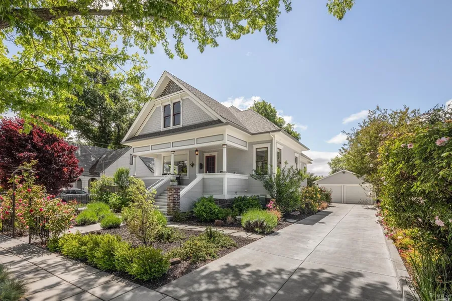 Impressive 1920s Queen Anne home has been remodeled to include many features for modern living. You'll find ample storage, custom closets, updated electrical, plumbing, tankless water heaters, dual zone furnace and a/c, and cable. Original finishes and details include the large picture windows, antique glass, beautiful casings, picture rails, ten inch baseboards, leaded glass hutch, pie safe and telephone niche from a bygone era. Metal wrought iron gates have been repurposed to create a welcoming entry and arch covered by roses. A wine cellar and large storage area is ideal for your wine collection. ADU has separate stackable washer and dryer, two mini split units, tankless water heater and electric meter. Enjoy the views of Fuller Park from the expansive front porch. The porch location and size is coveted by musicians performing at PorchFest. Surrounding the home you'll find wonderful landscaped gardens. Plants were selected to provide flowers for indoor arrangements: hydrangeas, lilacs, roses, lavender and the famed Nuccio's camellias. The home's proximity to downtown allows easy access to world renowned dining, entertainment venues, and events.
