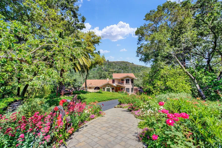 Welcome to one of Napa Valley's most serene regions where you are able to appreciate all nature has to offer! Situated within the Mount Veeder Appellation and neighboring the Mayacamas Mountains, this 10+/- acre property is complimented by beautiful floral grounds bursting with vibrant color, stately trees, spacious primary residence, plus two additional structures ideal for office, workshop and/or storage. Conveniently located just minutes from Redwood Road enables locals to enjoy this area known to cyclists and others wanting to meander through enchanted gardens and capture vineyard views. The open floor plan of the residence offers abundant natural light, high ceilings, most of the living space - including all bedrooms - on the main level, plus upstairs loft created as either office space or quaint reading area. The gated entries provide dual access to the property and would accommoda...