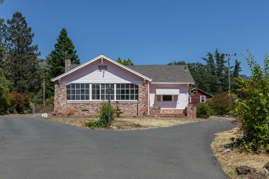 Location, Location, Location and let's throw in a lot of charm and character is what you will get at 1045 La Grande Avenue. With a Country feel but yet close to town. Drive up its circular driveway leading up to a 1500 square foot house adorned with rustic red brick and a full-window sun porch. Relax and relish the Western Napa sunsets with the soft evening breezes. Built circa 1915 sitting on 2.28 flat acres, having all the characteristics of a custom quality home of that era. Adorned with 10-foot coffered ceilings and built-in cabinets throughout, all adding to the sophistication of this century-old home. Once known as The Pink House the Christmas Tree Farm only adds to the charm and appeal. The barn boasts an upstairs loft area adjacent to the 3 double car garages with a workshop. Bring your tool belt and your offer, this is a true gem that won't last long!