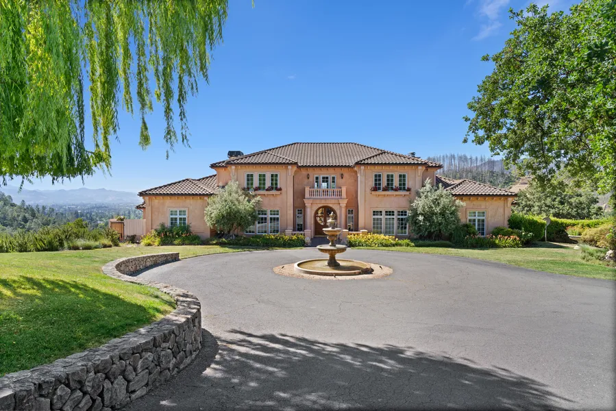 — 2900 Spring Mountain on 14.94 acres features main house with high-end finishes, soaring ceilings, five bedrooms, five-and-a-half bathrooms, a wine cellar, five car garage, a grand motor court, an 80 foot pool, outdoor kitchen, pizza oven with dining bar, tasting room, a one bedroom one bath guest House, lush gardens with green house, koi pond, and vegetable garden.