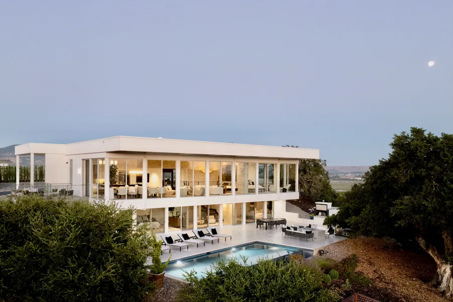 This truly stunning contemporary Napa residence offers unparalleled views and privacy. Completed in 2014 and set atop a 4.18-acre knoll with commanding 360-degree views of the surrounding vineyards, the home has three spacious bedrooms and three and one-half bathrooms providing ample space and comfort within its 3,653 square feet of bright and airy living space. Designed to maximize natural light and breathtaking views, the home features straight lines, flat roof, concrete construction, and floor-to-ceiling glass windows that frame one of the best views in all of Napa Valley, all of which epitomize its modern elegance and Wine Country sophistication.