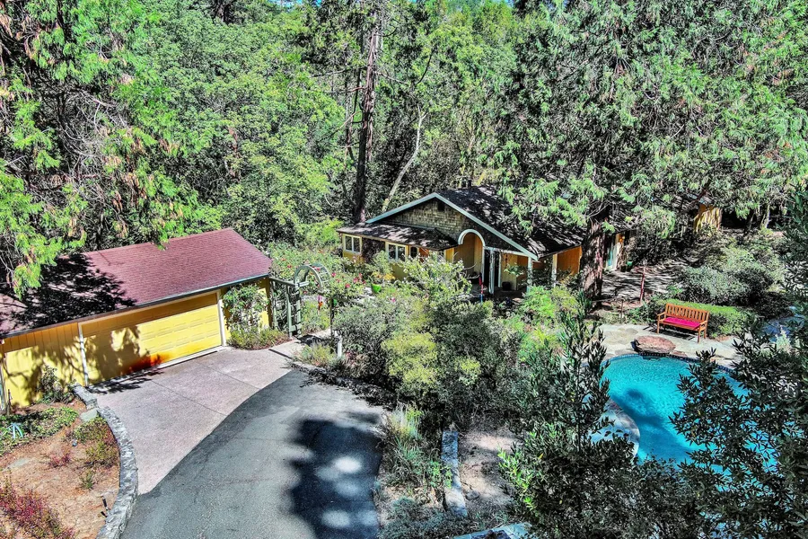 Tucked away on Napa's west side, this enchanting creek side property spans 2.33 acres, offering a harmonious blend of peace and accessibility. The four bedroom, two and a half bathroom single-level home, encompassing 2,499 square feet of living space, is filled with natural light and designed for comfort. The spacious kitchen, complete with a large butcher block island, double oven, and 6-burner gas cooktop, is a culinary enthusiast's delight. The living area features vaulted ceilings and skylights, with doors that seamlessly connect to the tranquil front and back patios. Each bedroom offers picturesque views of the surrounding landscape, bringing the beauty of the outdoors inside. Step outside to experience your personal paradise. The property includes a flat pasture, vibrant garden, fruit trees, a lush lawn, and a sparkling in-ground pool, ensuring there's space for every desire. Unwin...