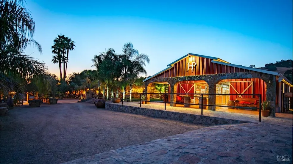 Stunning Equestrian Ranch near downtown Napa with 2 APNs. Featured on local tv shows, Cowboy and Indians Magazine and NFL International commercials. Perfect for your beloved horses and entertaining friends! Close to riding trails and nestled between a high quality hobby vineyard, deluxe horse facility and a charming ranch style bungalow to hang your hat! As you drive through the custom private gates, you can't help but smile when entering this magical compound. Approximately 4 acres of mature olive trees, numerous water features, twinkle lights, bocci ball, pizza oven, sitting areas to the meticulous 20 +/- horse stalls, riding arena, tack and feed rooms, it is a horse lover's oasis! The +/- 1 acre pinot noir vineyard produces high quality grapes and is available for the next owner to produce their own private label! In addition to a charming 3 bedroom / 2 bath ranch style bungalow, ther...
