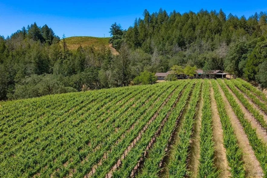 Beautiful tranquil expansive views, approximately 2.5 acres of Diamond Mountain AVA vineyard, close to downtown Calistoga, solid water and storage and a large 2 bedroom, 2.5 bathroom home used originally as a family home then as a place for guests or interns. Home is well maintained, but original to its building era. The basement houses a temperature controlled room for wine storage, and the garage contains a flex space which can be used as a home office or art studio. The end user could use as is, remodel or build their dream home. The 2.5+ acres of predominately Cabernet Sauvignon vines has been a prized part of the owner's wine portfolio. Come sit on their deck and look over the valley to understand the peace this property brings you.