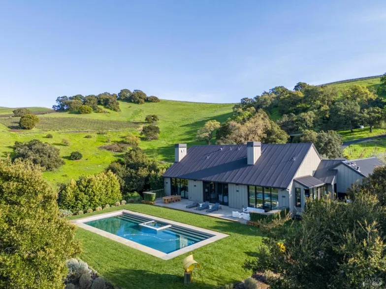 Serenely situated in the rolling hills of Napa, Oak Ranch sits on 12 acres laden with beautiful native oaks and has views from every vantage point over the positively breathtaking land and your own vineyard. The Hurley Hafen designed, custom single-level home, is a perfect antidote for those seeking privacy and calm. A seamless blend of indoor-outdoor spaces and natural light throughout both residences. The Chef's kitchen with great natural light, top of the line appliances and custom Imported Italian cabinetry abuts the secondary full kitchen, wine cellar, BBQ deck and a family room with a large banquette overlooking the pool. The primary suite has a Prada inspired closet and a private sun deck with outdoor shower and office off the spa like bathroom. The large media room, sun room, game room and 2 additional ensuite bedrooms complete this home. As you cross over the footbridge into the ADU- guest house you'll feel like your are in a tree house overlooking the Oak trees and valley below. Two spacious Ensuite guest rooms, nicely appointed guest kitchen and great room all flow to the cantilevered deck. The 2 car garage has a lift and storage space. Visiting the property will bring this serene, magical home filled with warmth and calm to life.