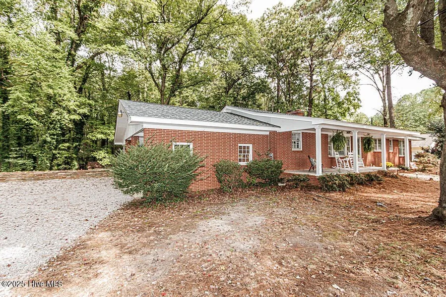 Rare opportunity for peaceful country living on 1 acre in a charming brick ranch that just says welcome home! NEW ROOF! NEW FLOORING! REFINISHED ORIGINAL OAK HARDWOODS! FRESH PAINT THROUGHOUT! ALL NEW GE APPLIANCES INCUDING REFRIGERATOR, WASHER & DRYER! GRANITE COUNTERTOPS Even a NEW WELL! Perfect size, at around 1700 sq. ft. this house has all you need and more. With 3 bedrooms PLUS a 4th room that could function as an extra bedroom/office/flex room, 2 full baths, cozy den with beams & feature wall fireplace w/ wood burning insert, and additional formal living room (could also be a formal dining area) and eat-in kitchen. Fabulous spacious laundry room with sink station and storage cupboards. You'll love the outside just as much as the inside. Choose which area to enjoy depending on the time of day. With generous front & rear covered porches, extended 2 vehicle carport with lots of possibilities, or relaxing by the fire pit area under the stars! Storage Barn in the rear. Distinctive slate/granite stone feature planter wall that can make quite a landscaping statement. Perfect forever home. Who doesn't need some peace and quiet these days? County taxes only! Easy access to HWY 64 for an easy commute to Raleigh. They don't build them like this anymore! Seller is offering $2500 in buyer concessions with acceptable offer. Please note property only came available for showings 10/2/2025 despite days on market accumulating. Seller chose to do further renovations to make it totally move in ready.