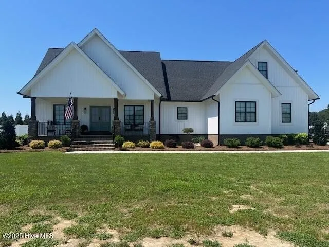 ALMOST NEW desirable home in NASH COUNTY. Enjoy county taxes only. County water and septic tank for 4 BEDROOMS. NEW Vinyl privacy fence in rear with EXTENDED PATIO and STONE SITTING WALL for patio parties! Screened rear entertaining porch, NEWER SWIM SPA (14 X 8) to remain. .95 ACRE lot. Inviting front porch. DOUBLE ATTACHED GARAGE. Waterfront community with a public boat dock just a minute away for fishing or boating. This house will NOT disappoint with almost 3600 sq. ft. from the inviting wide foyer to the private office separated by French stained barn doors. HUGE DEN with stacked stone fireplace, built in bookcases and beamed ceilings. Open concept blends entertaining to cook's kitchen. QUARTZ countertops and tile backsplash. Large island, gas range, stainless refrigerator and oven. You will LOVE the walk-in pantry with counter space, open shelving and wine cooler. Four bedrooms wit...