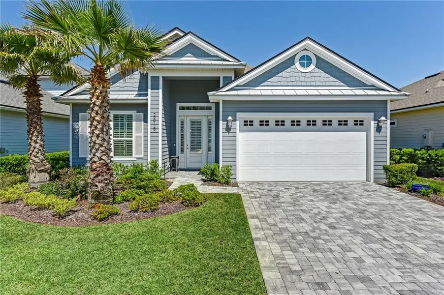 Relax with your morning coffee and take in the gorgeous water view from this custom home ON THE ISLAND! This 3 bed/2 bath open floorplan with office and formal dining area, showcases a large gourmet kitchen with granite counter tops, subway tile, gas stove, bar seating, pendant lighting, and stainless appliances. Interior features include 10' ceilings, hardwood floors throughout living areas, plantation shutters, crown molding, wainscoting in dining room, and granite fireplace in great room. Master Bedroom features double step tray ceiling, Closets by Design, and no entry European shower. Fully screened porch, brick paver driveway, two car garage and irrigation system. Dunes of Amelia is a natural gas community with tankless water heater, gas fireplace and dryer. This fabulous home is centrally located close to shops and restaurants, with access to the bike path that leads to the beautif...