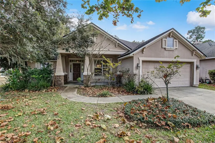 This 4BR single story home is now available in the exclusive golf community of North Hampton! The covered front porch, stacked stone accents, & huge trees give this one plenty of curb appeal. As you enter the home you will find a flex space to the left, perfect for an office or formal living. To the right is the dining room just off the kitchen. The main living area boasts a huge eat in island kitchen that opens nicely to the great room. The master suite has a large bedroom area and bathroom w/huge walk in closet, separate vanities, tub, and shower. On the other side of the home is a common area with built in desk and cabinet, three additional BR's, and the guest bath. Spacious covered rear lanai with private and quiet preserve views. Amenities include pool area, tennis and pickle ball courts, brand new playground, soccer, and a kayak launch at the Outpost. Just a short drive from the sa...