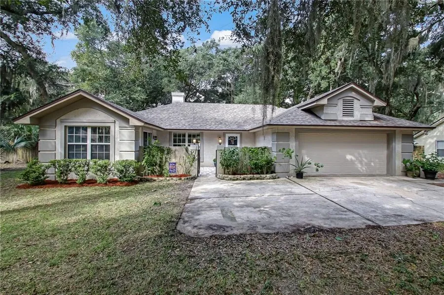 Welcome to Riverside! This well maintained concrete block home is located just off Amelia Island in a small community with NO HOA! Nestled among numerous oak trees on over a half acre corner lot with plentiful yard space. Enter the home through the newly paver'd front courtyard. Kitchen boasts nice tall cabinets, newer stainless appliances, and multiple pantry closets. The spacious great room and Florida room offer plenty of living space. The master suite has a private bath, walk-in closet and access to the Florida room. The two guest Bedroom's and guest bath finish off this convenient floor plan. A large covered back porch and open brick lanai off the Florida room offer multiple options for outdoor living. Peach, Meyer lemon, Blood orange, and wild plum trees offer fruit for your table. Fully fenced but in need of repair. Smart WIFI silent side mount garage door opener newly installed i...