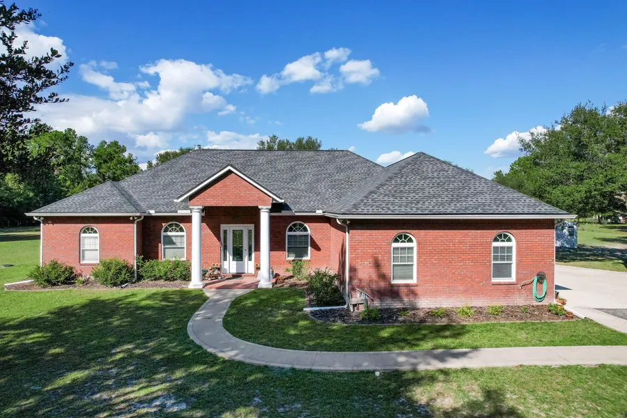 Looking for a Country Estate? A home with a panoramic view? A real Masterpiece! Then look no further, this home is over 3300 square feet that's meticulously crafted. Features in this home are a real fireplace, upgraded granite counters throughout, Kitchenaid Stainless Steel appliances, and a sprawling layout. The master bedroom features a high double trayed ceiling with accent lighting, His and Hers walk-in closets, a large walk-in shower with 3 heads and the controls are outside for convenience. This home sits on 5 acres with Live oaks where deer feed, and a view from the second floor balcony that is breathtaking. There's a separate pole barn, a workshop, and pump house and a shower outside to rinse off before you come in from yard work. This home is truly a masterpiece and you will definitely not want to miss taking a look at this home. The property is all fenced so if you want some fa...