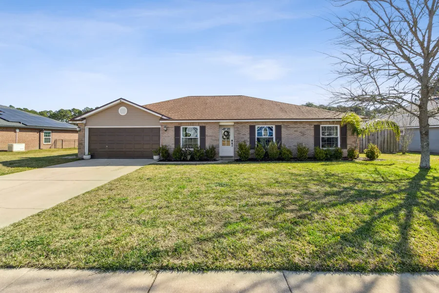 A beautiful POOL home with a relaxing backyard oasis is ready for you to see! This cozy updated 2132 sq ft home with four beds & two baths in the desired Page Hill Community offers spacious living, a vast backyard & excellent views of the pond & wooded area. The sparkling in-ground pool with fountains enhances the 1 acre lot. Numerous updates will appeal to your living style, with a new luxury tough noseeum screened enclosure surrounding the pool & outdoor entertaining space. Beautiful new LVP flooring, skylights for natural light with remote-controlled solar shades & interior paint. Custom Shed, Roof 2017, HVAC 2020, Water Softener, Refrigerator & Dishwasher 2023, Water Heater & Microwave 2022, No CDD fees, A-rated Schools, located near shops & Jax International Airport, Kings Bay Naval Base, & Amelia Island Beaches. Experience this great location. Don't miss this opportunity!