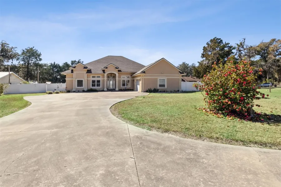 Your own private OASIS! Welcome to this exceptional property that offers a single-family residence with spectacular marsh views and a steel frame outbuilding/workshop for your car collection, recreational vehicles, or home hobbyist activities. Single story home features 3BR/3BA with Den. The home features an open floor plan, engineered wood floors, crown molding and 12-foot ceilings. The kitchen for the cook enthusiast includes a Thermador gas range, GE Monogram refrigerator, center island with sink and granite countertops. Desirable split floor plan with access to the pool area with pavers and screened lanai from the great room and primary bedroom. Marsh front on Garner Creek with direct access to the Nassau River. Stucco exterior, ICF construction and tankless water heater. Call for your private tour!