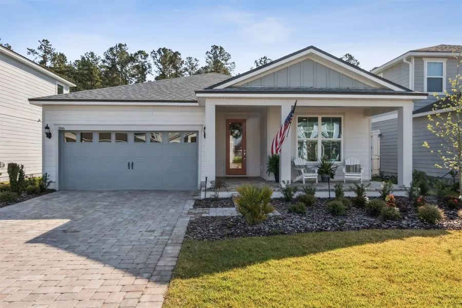 Why wait to build? This stunning three bedroom, two bathroom home with flex room is less than one year old and still has the builders warranty. You will fall in love the moment you open the door to this meticulously maintained home and see the exquisite hardwood floors. It truly shows like a model home with over $60,000 in custom upgrades, abundant natural light, and open floor plan that seamlessly connects the living, dining, and kitchen areas. The gourmet kitchen features upgraded KitchenAid appliances, quartz countertops, cabinets, and lighting, ensuring both style and functionality. The attention to detail in both design and functionality makes this home a perfect haven for those seeking a harmonious living experience. The glass slider triple pocket doors lead to the covered patio. Whether you're entertaining guests in the open living area, enjoying the covered patio, or simply unwinding in one of the well designed bedrooms, this home offers a perfect blend of comfort and style.